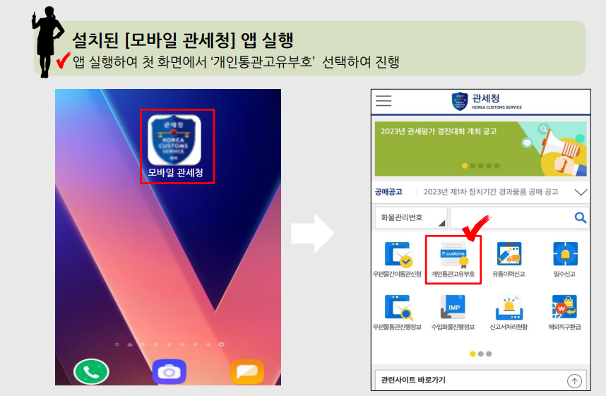 ① 모바일 관세청 앱을 스마트폰에 다운로드하고 설치합니다.