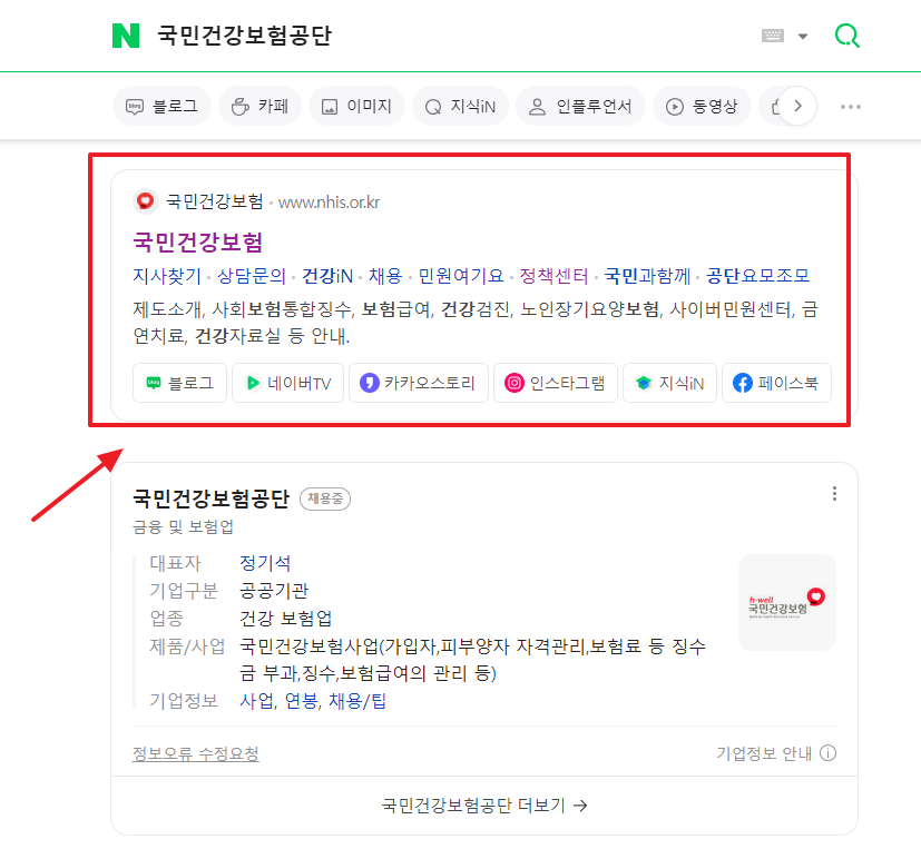 ① 국민건강보험공단 홈페이지에 접속합니다.