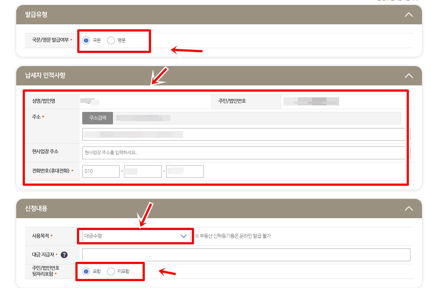 ④ 인적 사항 입력: 필요한 인적 사항을 정확히 입력합니다. 이에는 신청인의 이름, 주민등록번호 또는 사업자등록번호 등이 포함됩니다.