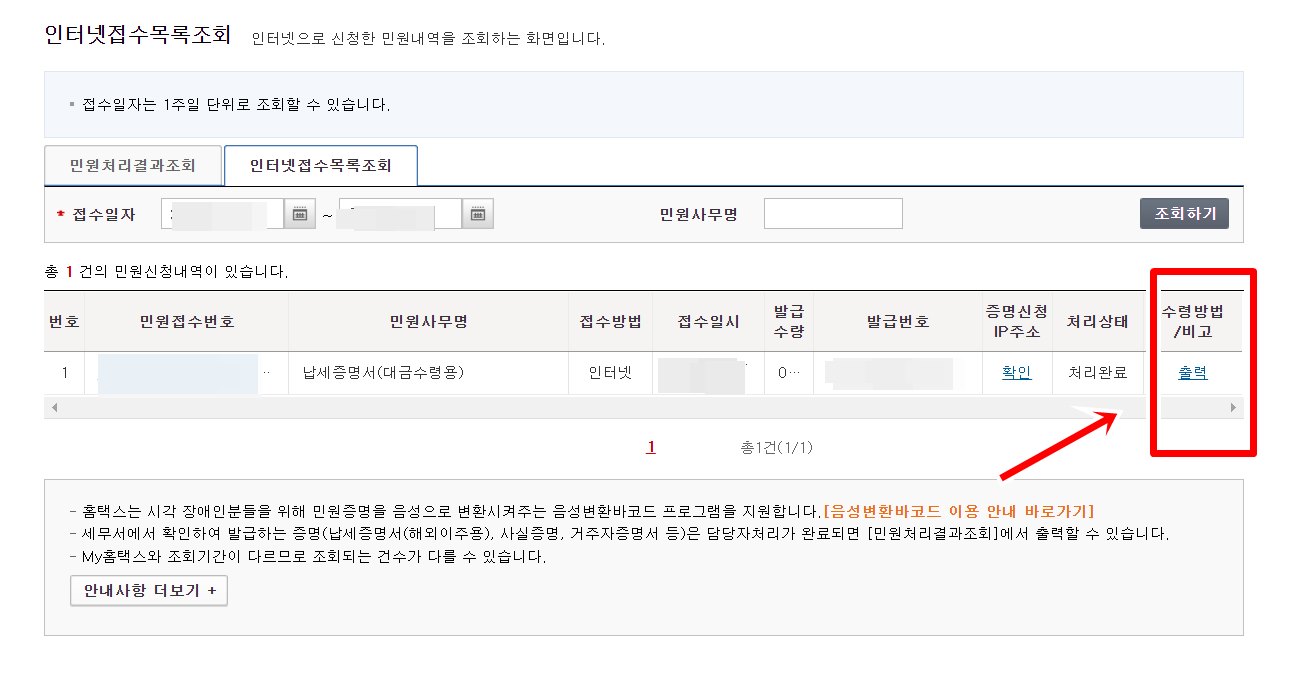 국세 및 지방세 완납증명서를 인터넷으로 발급받을 때 다음과 같은 주의사항