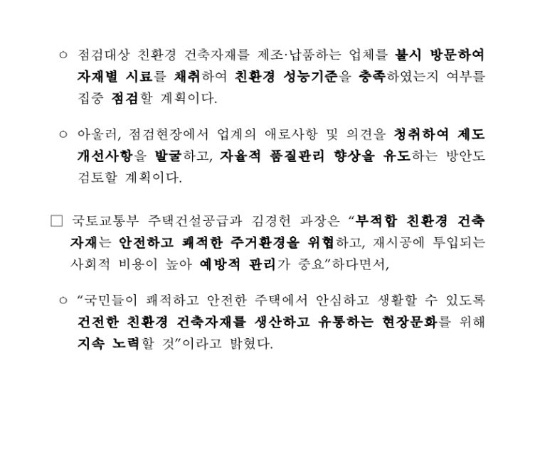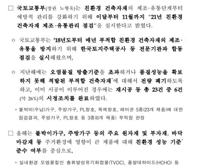 국토교통부의 친환경 건축자재 점검, 무엇이 달라졌나?