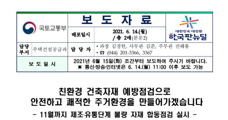 국토교통부의 친환경 건축자재 점검은 건축자재의 품질과 안전성을 확보하기 위한 중요한 조치입니다. 이 점검은 주로 공동주택에 납품 중이거나 납품 예정인 업체를 대상으로 이루어집니다.