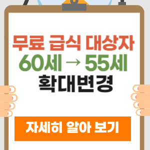 ① 노인 무료급식 대상 확대: 이전에는 60세 이상의 노인만이 무료급식의 대상이었으나, 이제는 55세 이상의 노인도 대상에 포함됩니다. 이로 인해 더 많은 노인이 무료급식을 받을 수 있게 되었습니다.