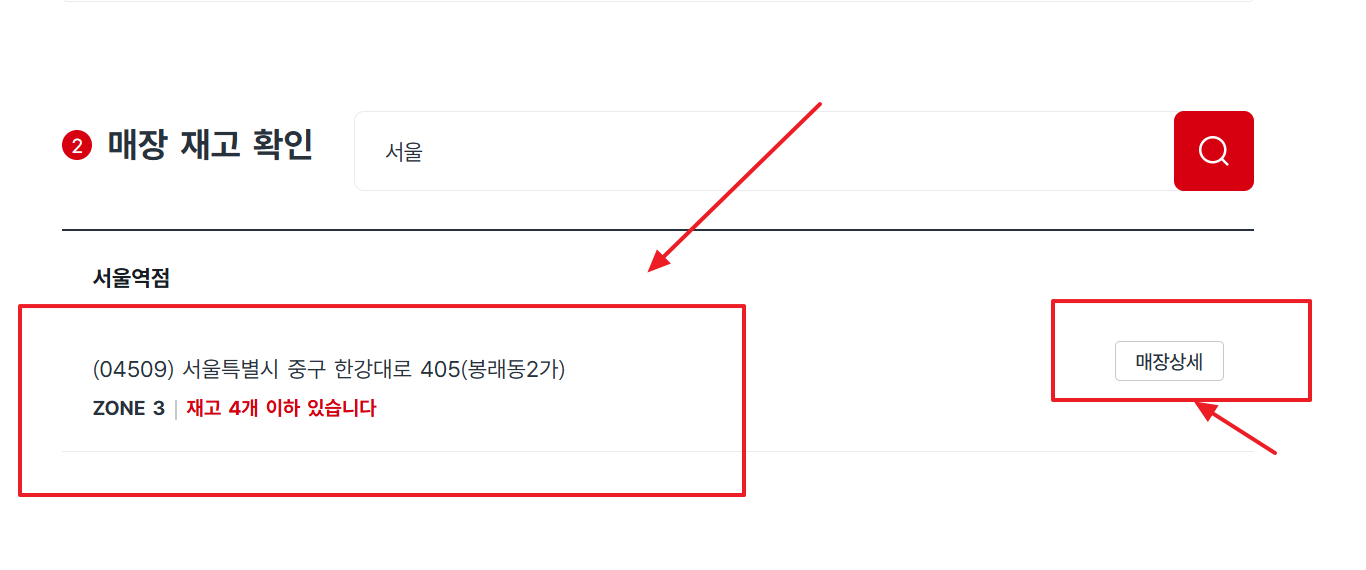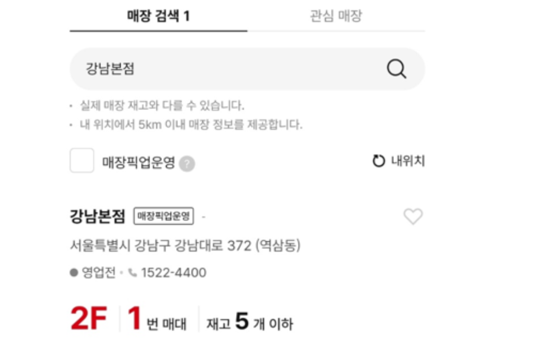 검색 결과를 통해 가까운 다른 매장의 재고 상태도 확인할 수 있습니다. 이를 활용해 가장 적합한 매장을 선택하고, 쇼핑 동선을 효율적으로 계획하세요.