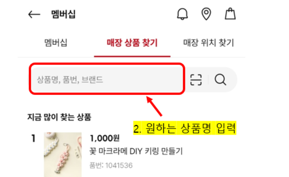검색 결과에는 해당 상품의 매장 내 위치, 재고 상태, 그리고 추가 정보를 확인할 수 있습니다. 매장 내 구역이나 진열대 번호가 표시되므로, 원하는 상품을 손쉽게 찾을 수 있습니다.