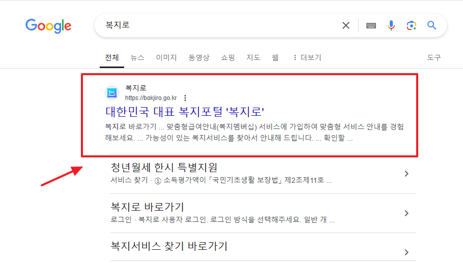 복지로 공식 홈페이지(https://www.bokjiro.go.kr)에 접속하여 메인 화면에서 신청 페이지로 이동합니다.
