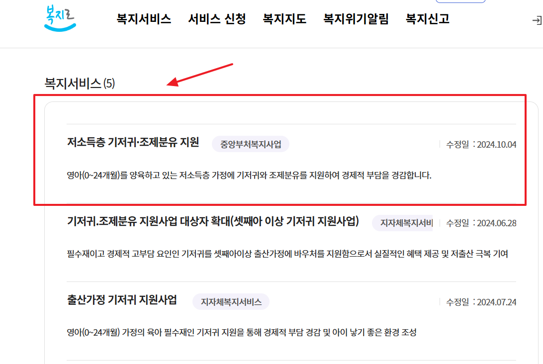 복지로 기저귀 바우처 자격조건 및 신청 방법