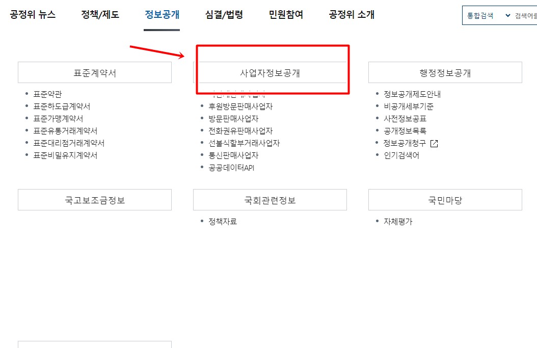 ③ '사업자정보공개' 메뉴를 클릭합니다.