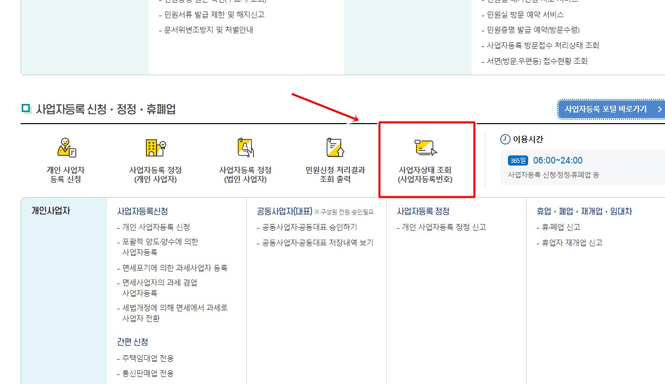 ③ '사업자등록번호 조회' 서비스를 선택합니다.