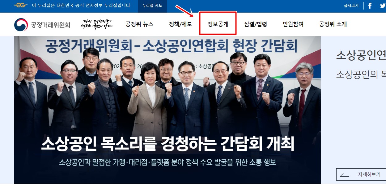 ② 메인 메뉴에서 '정보 공개'를 선택합니다.