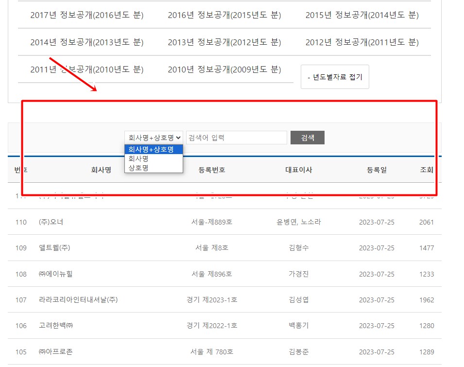 ⑤ 검색 옵션(회사명, 상호명)을 입력합니다.
