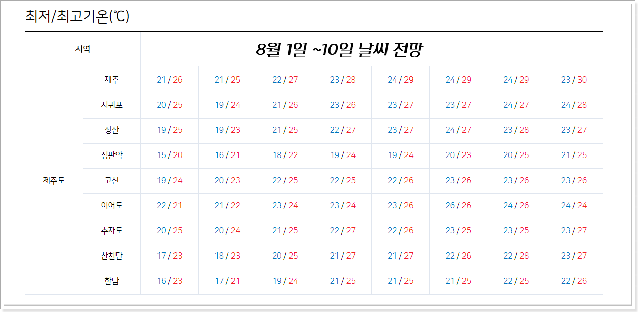 올해 제주도 8월 한달 날씨 전망 (핫한 여행지 추천)
