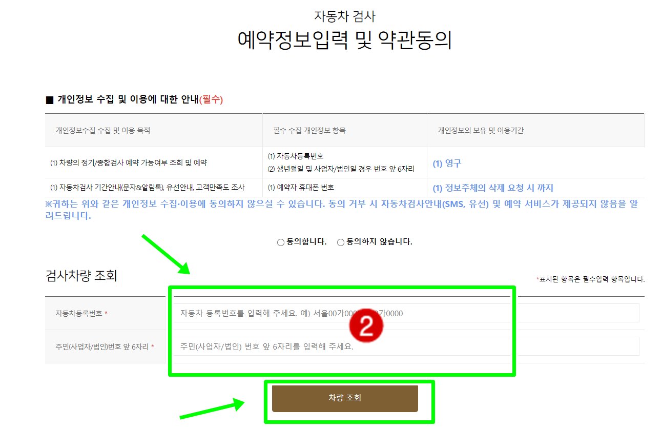 ② 차량 등록번호와 차주의 생년월일 앞 6자리를 입력합니다.