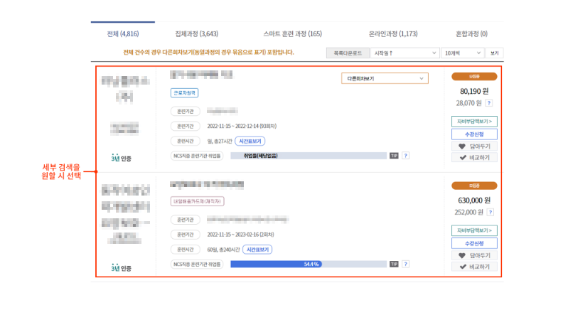 ② 수강 신청: 원하는 훈련 과정을 찾은 후, 해당 과정에 대한 수강 신청을 합니다. 이 과정에서는 훈련비 지원 여부와 같은 중요한 정보를 확인해야 합니다.