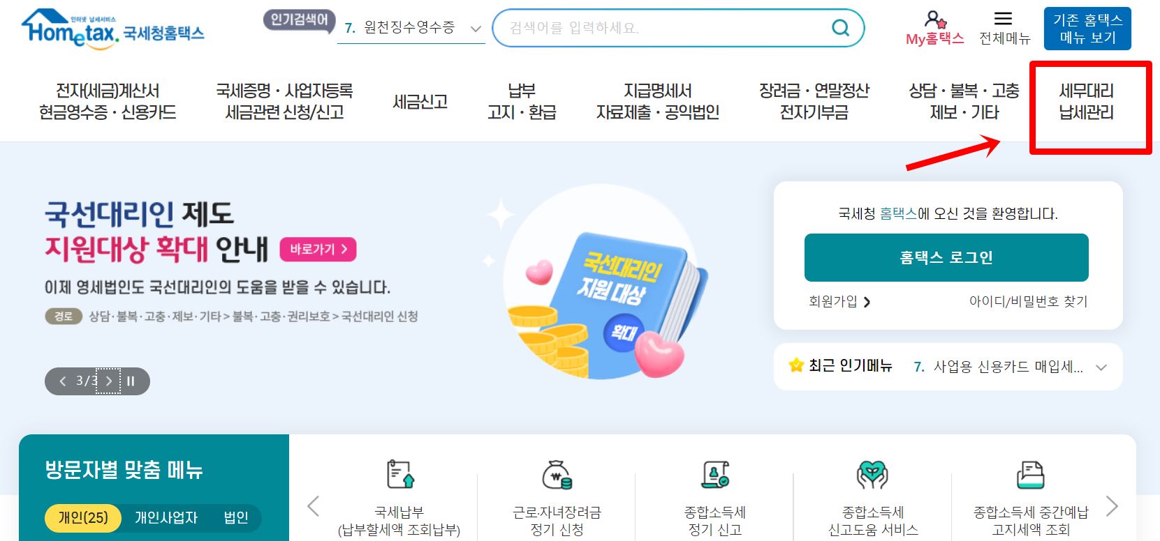 현재 홈택스 나의 세무대리인 수임 현황 확인 방법