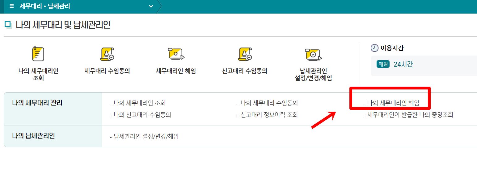 ④ '나의 세무대리인 해임' 메뉴를 선택합니다.