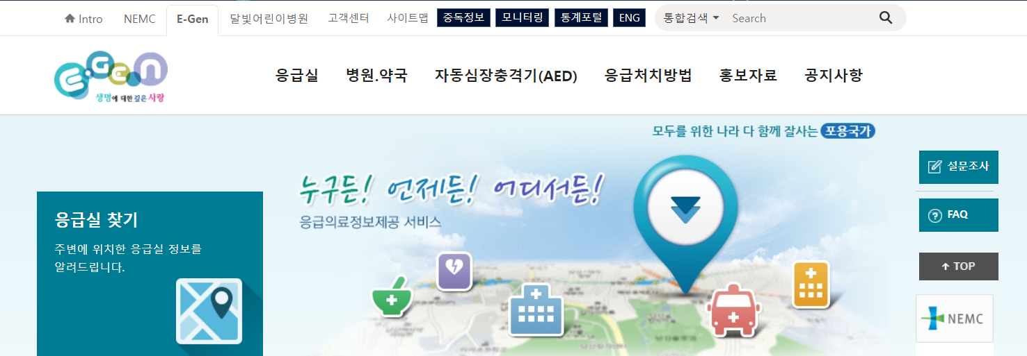① 응급의료포털(E-Gen) 홈페이지에 접속합니다.