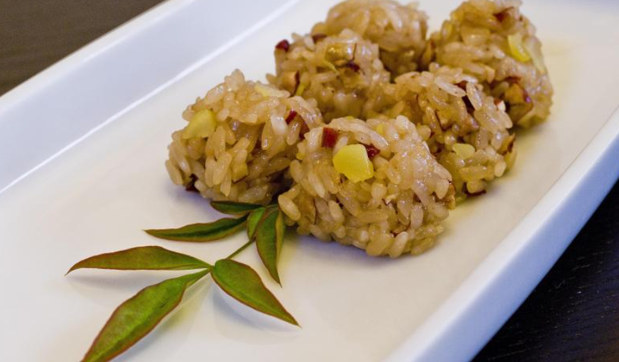 ② 찹쌀에 간장, 꿀, 참기름을 넣어 밑간을 하고, 밤, 대추, 잣을 섞어줍니다.