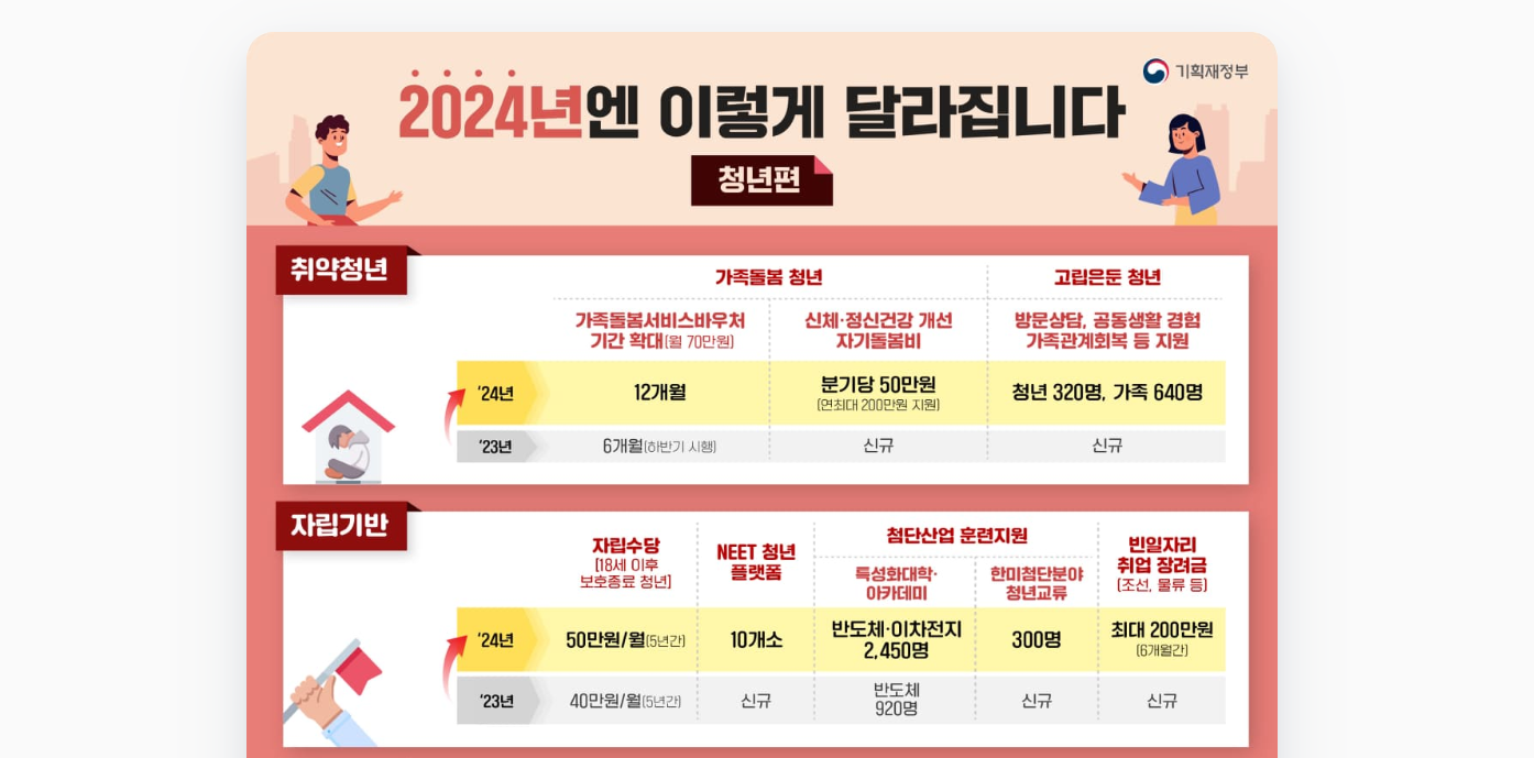 2024년 달라지는 복지제도 혜택 - 청년/취약 계층