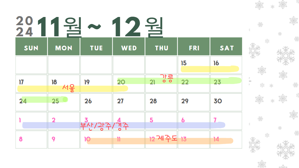2024년 첫눈 언제? 지역별 첫눈 예상 날짜 전망 (서울/부산/제주도/강릉/광주/경주)