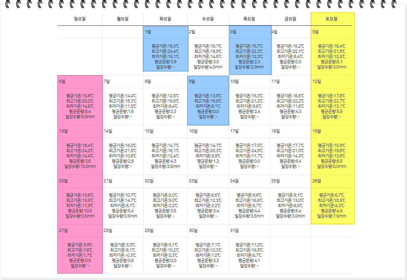 주간 구분 날짜 예상 날씨
