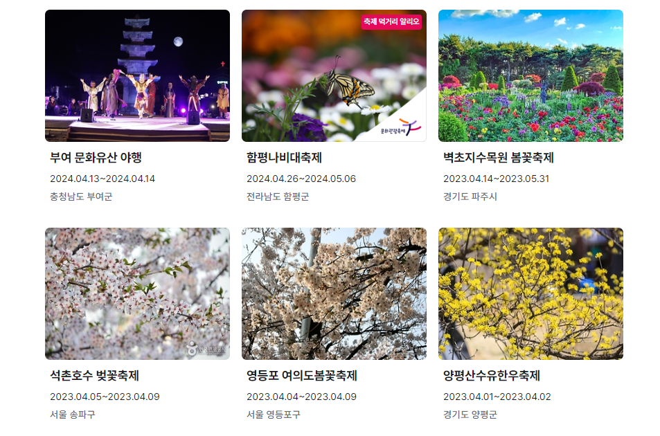 | 함평나비대축제 | 2024.04.26~2024.05.06 | 전라남도 함평군 |