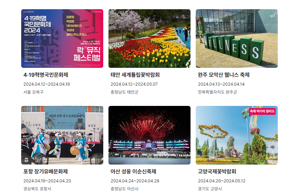 봄의 정취를 만끽할 수 있는 2024년 4월, 전국 각지에서 다양한 테마의 문화관광축제가 열립니다. 이 시기에는 벚꽃, 산수유 등 봄꽃이 만발하여 축제의 즐거움을 더해줍니다. 아래 표에서는 2024년 4월에 개최되는 주요 축제들을 소개합니다. 이를 통해 봄나들이 계획을 세우는 데 도움이 되길 바랍니다.