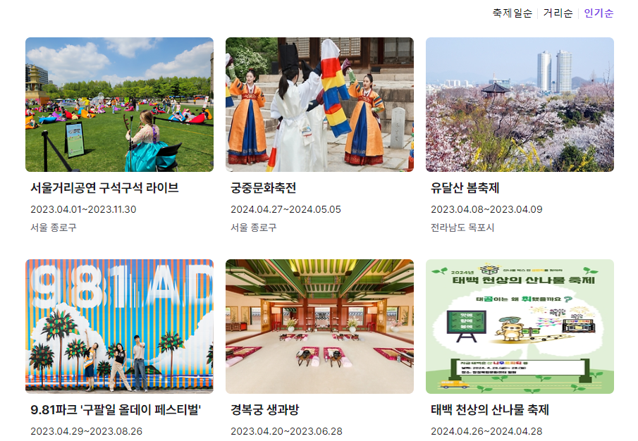 | 영등포 여의도봄꽃축제 | 2024.04.04~2024.04.09 | 서울 영등포구 |