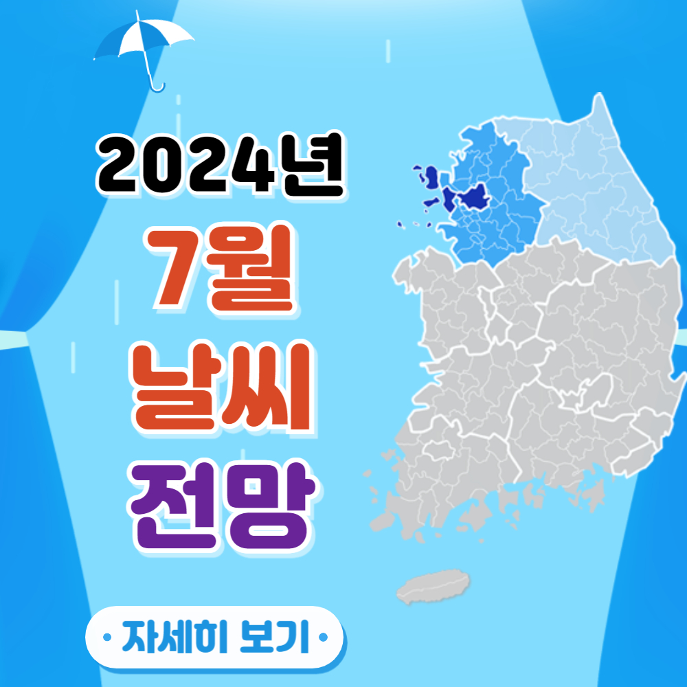 2024년 7월은 장마와 무더위가 번갈아가며 나타날 것으로 예상됩니다. 특히 건강 관리와 자연재해 대비에 신경 써야 합니다. 휴가 계획을 세우는 데 있어 날씨 변화를 잘 고려하시기 바랍니다.