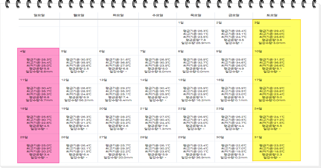 2024년 8월 주간별 날씨 전망 (서울 기준)