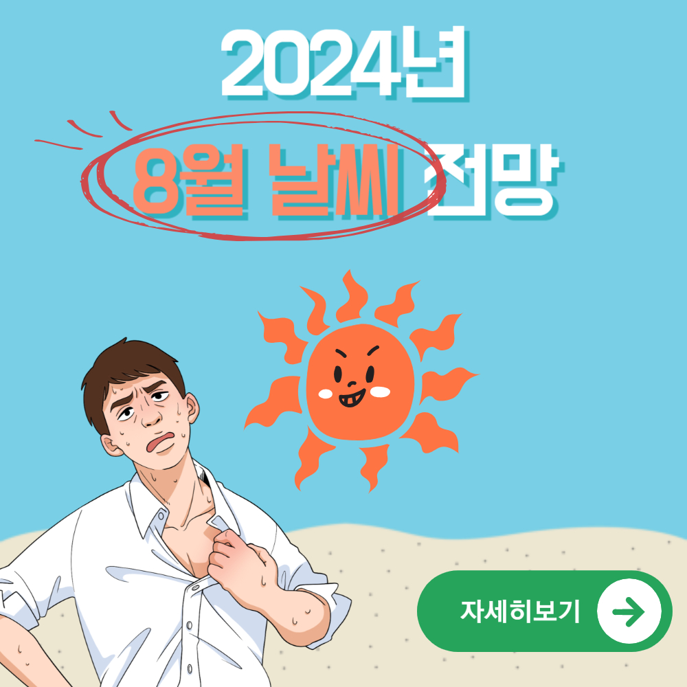 2024년 8월이 다가 오면서 휴가 준비로 바쁘신가요? 휴가 준비중에 제일 중요한 것이 바로 날씨 인데요~ 8월 날씨 전망은 어떻게 나올까요? 기상청에 따르면, 8월의 기온은 평년보다 높을 확률이 50%에 달하며, 강수량 역시 평년과 비슷하거나 많을 확률이 높다고 합니다. 따라서 오늘은 2024년 8월 서울/인천/부산/광주/대구/경주/속초 등 지역별로 구분하고 날씨를 전망해 보겟습니다. 많은 도움이 되길 바랍니다.