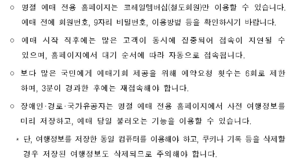 추석 KTX 승차권 예매 시 주의사항