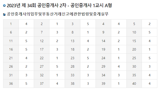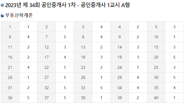 35회 공인중개사 시험 가답안 보기 (2024년)