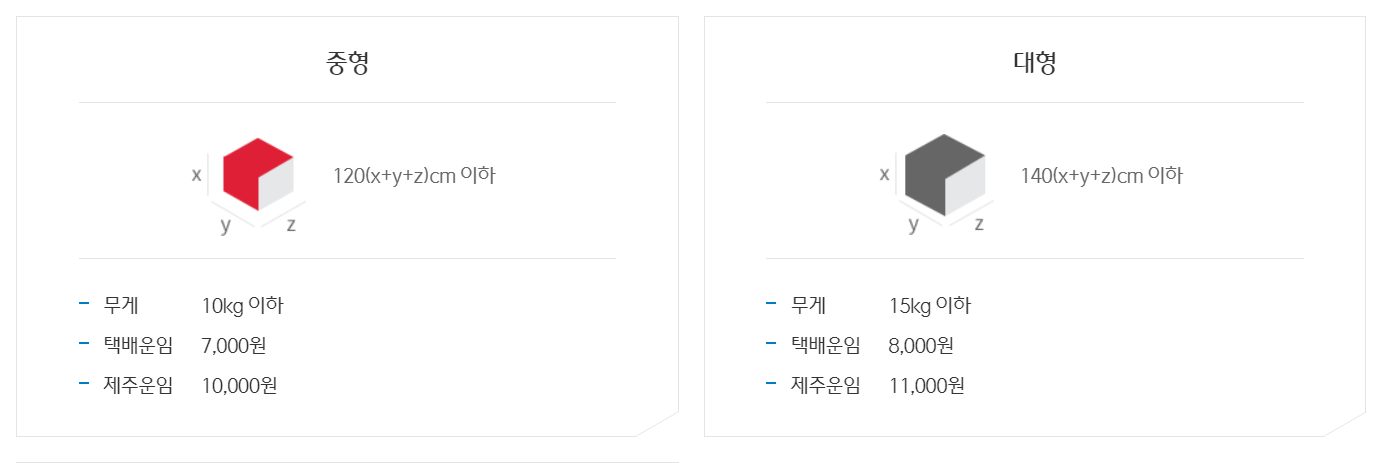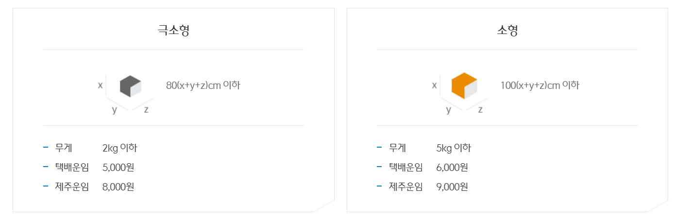 유형 규격 (가로+세로+길이) 무게 택배운임 제주운임