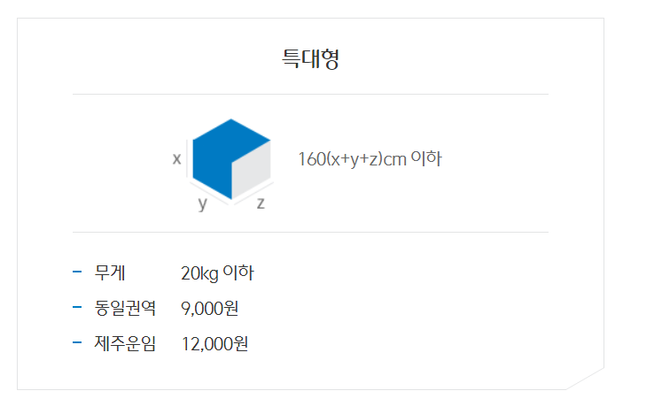 특대형 160cm 이하 20kg 이하 9,000원 12,000원