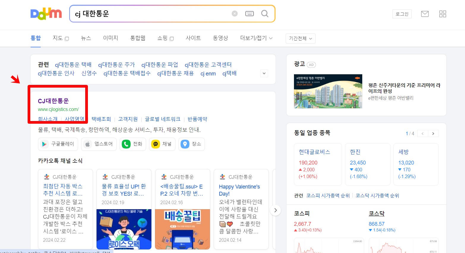 홈페이지 접속: 웹 브라우저를 통해 CJ대한통운 공식 홈페이지에 접속합니다.