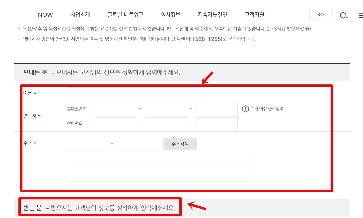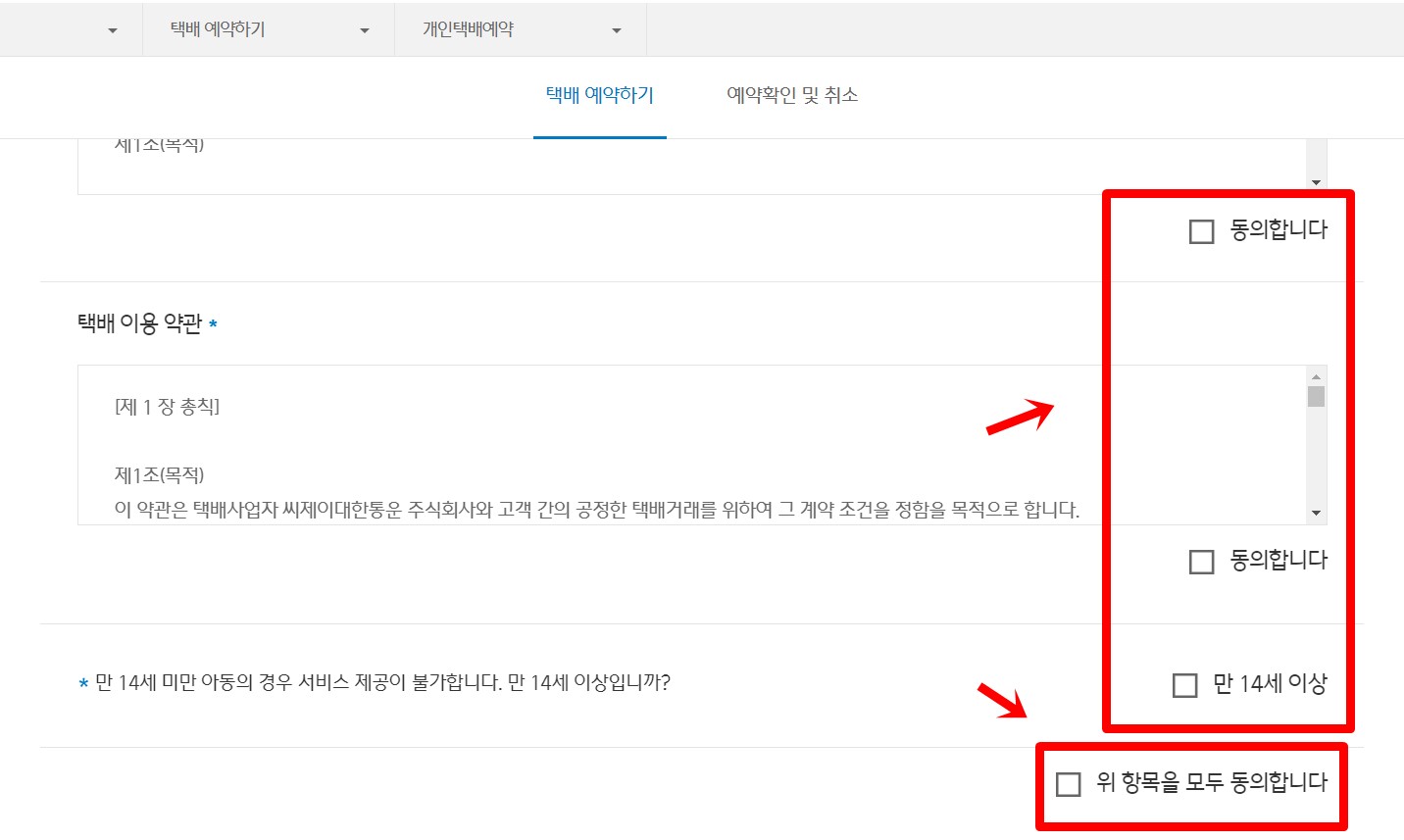 CJ대한통운 택배예약 시 주의사항